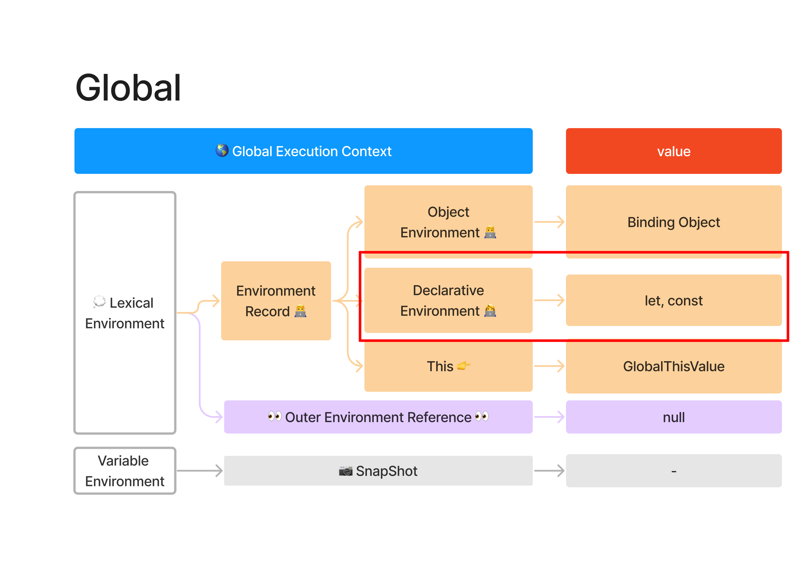 let과 const변수를 선언하면, 선언부 환경(Declarative Environment)에 등록된다.