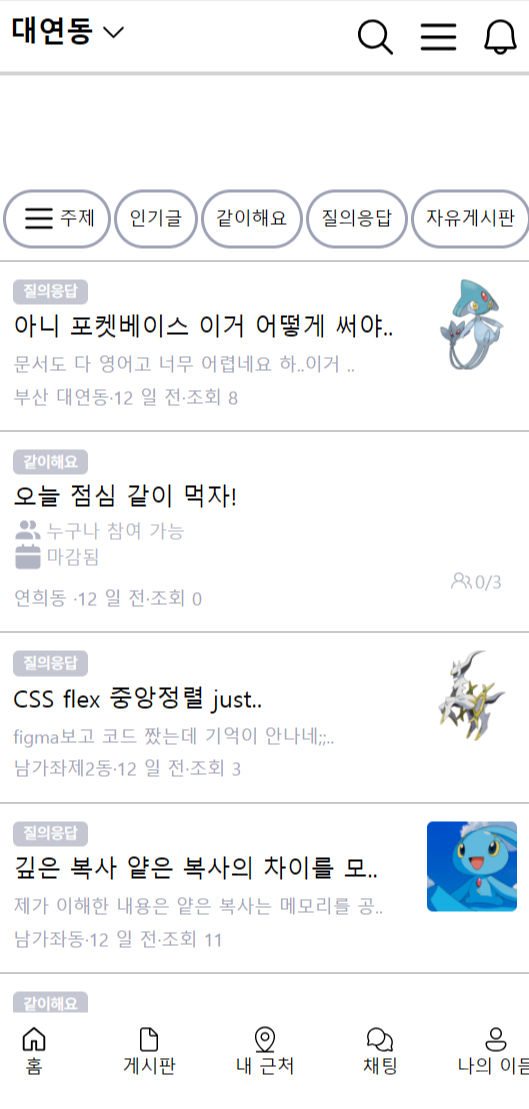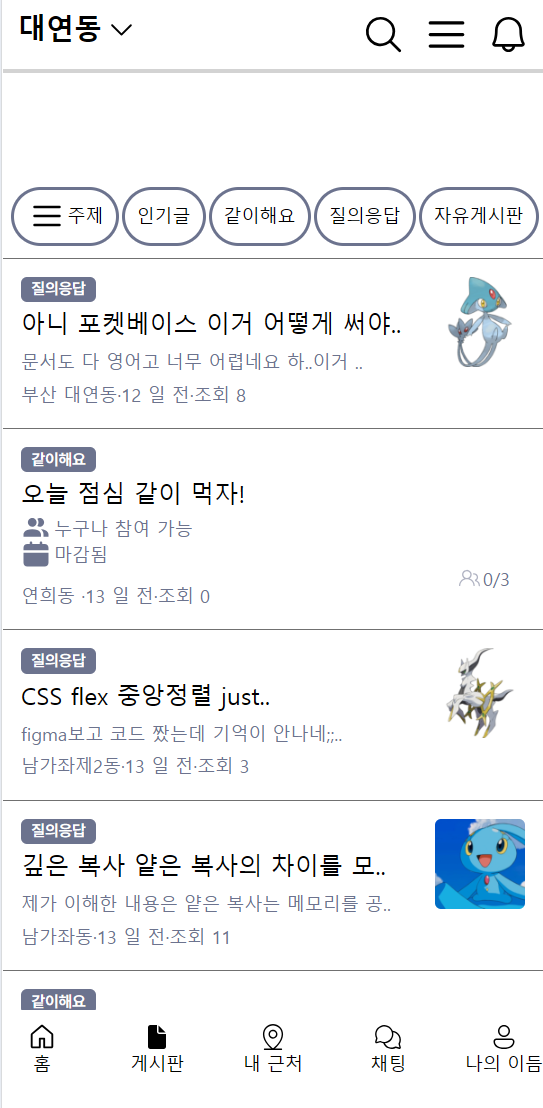 게시글 컴포넌트 - pocketbase에서 같이해요와 질의응답 페이지를 조인하여 출력 및 각 카테고리 양식 최적화