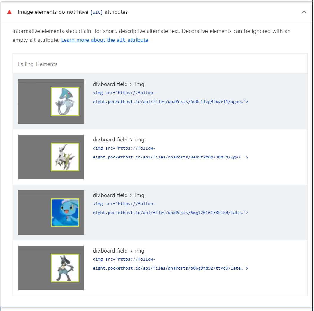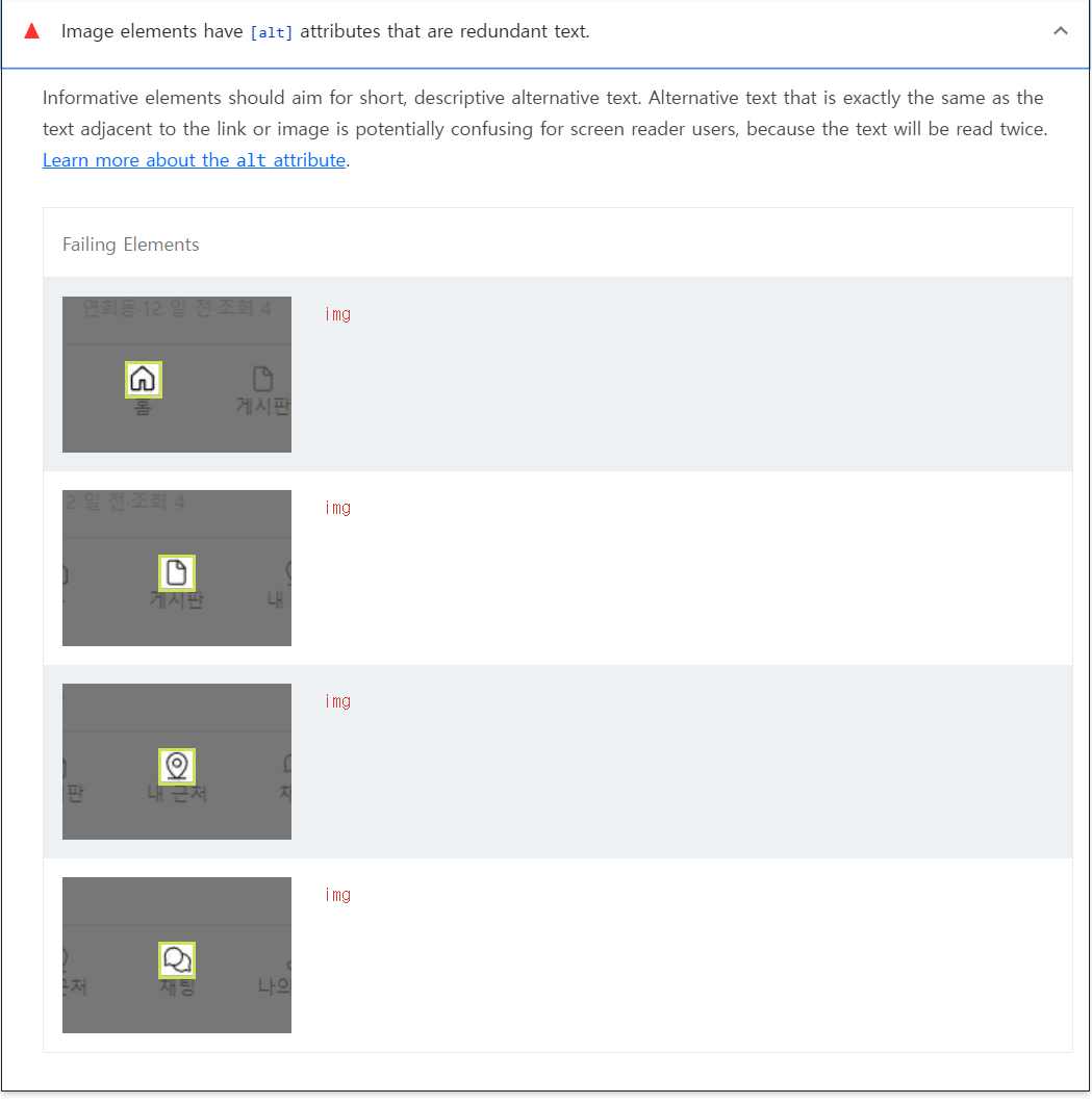 - 단순 게시글 표시 이미지에 빈 alt속성 부여, 텍스트와 중복되는 alt속성 삭제