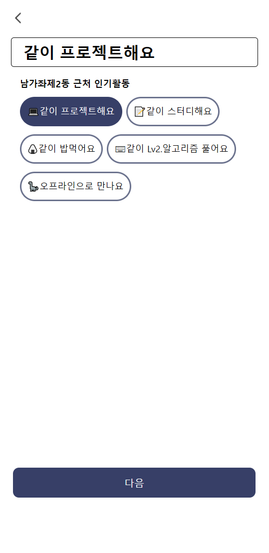 버튼 카테고리 - 주제 클릭 시 주제목록 표시, '같이해요' 클릭 시 '같이해요'게시판 이동