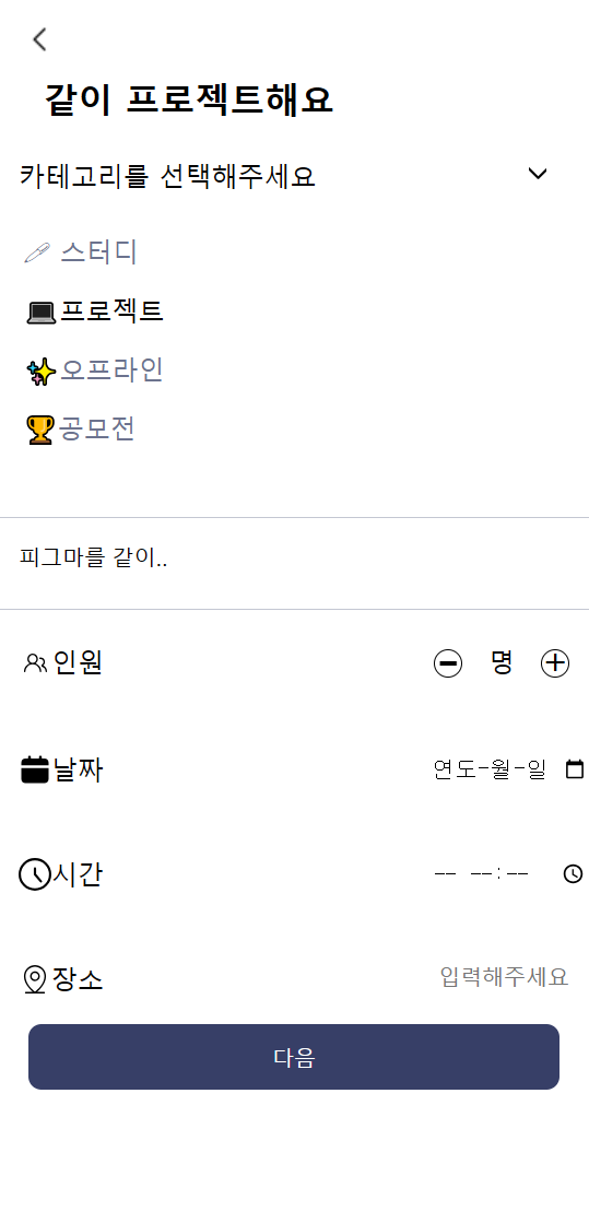 - 팀원 제작 Back네브바, input, 제출 버튼 컴포넌트를 CSS조정하여 사용.
