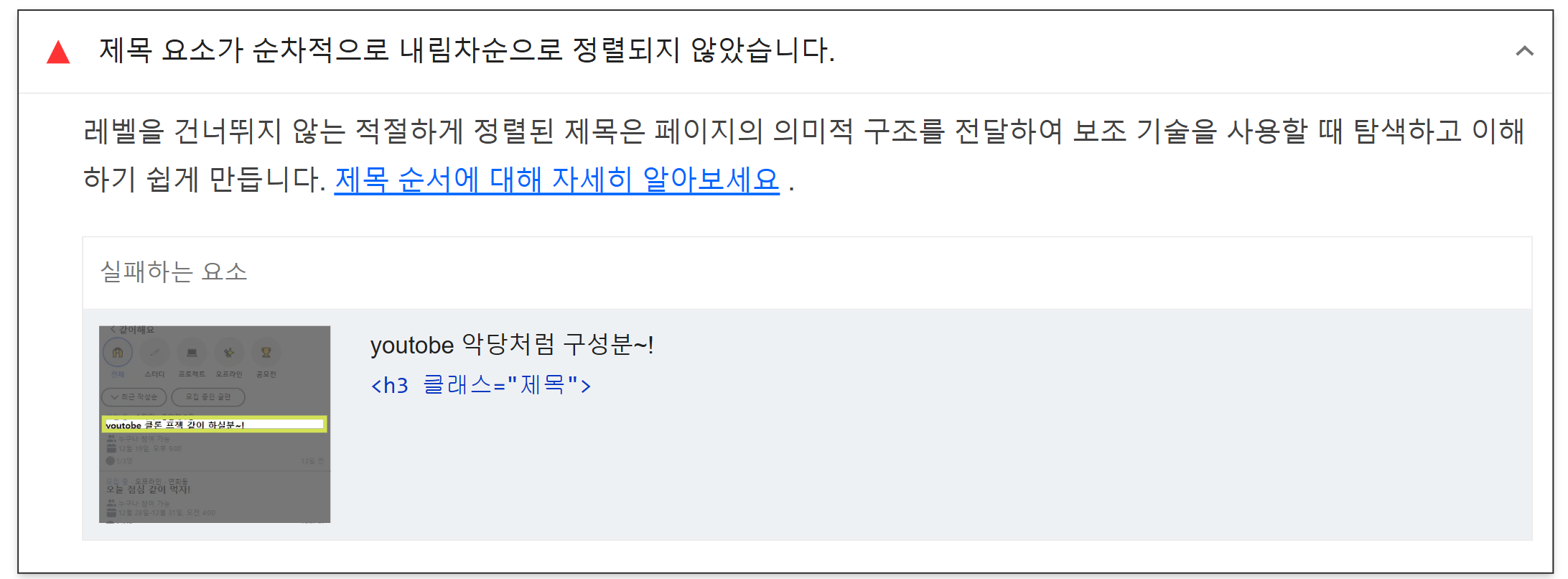 - h1 뒤 h3 등 혼용하던 제목태그 순서대로 수정