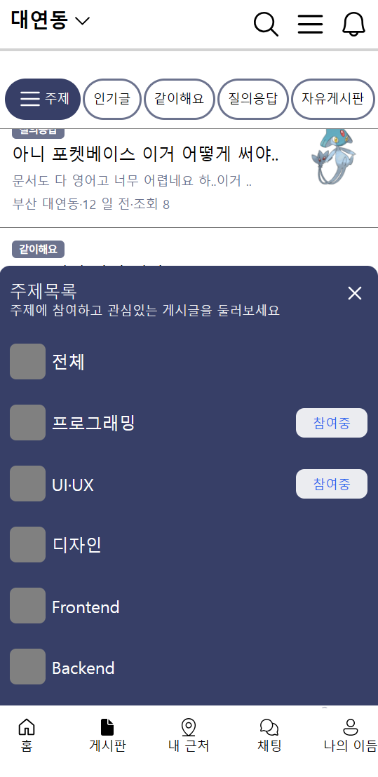 - 주제 선택 시 주제에 해당하는 게시글 출력